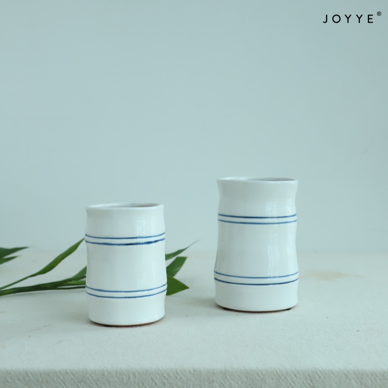 - Each vase is shaped to echo the graceful structure of bamboo, finished in a smooth white glaze accented with delicate blue stripes. This timeless palette, combined with the natural silhouette, offers a subtle nod to Chinese heritage with a minimalist touch.