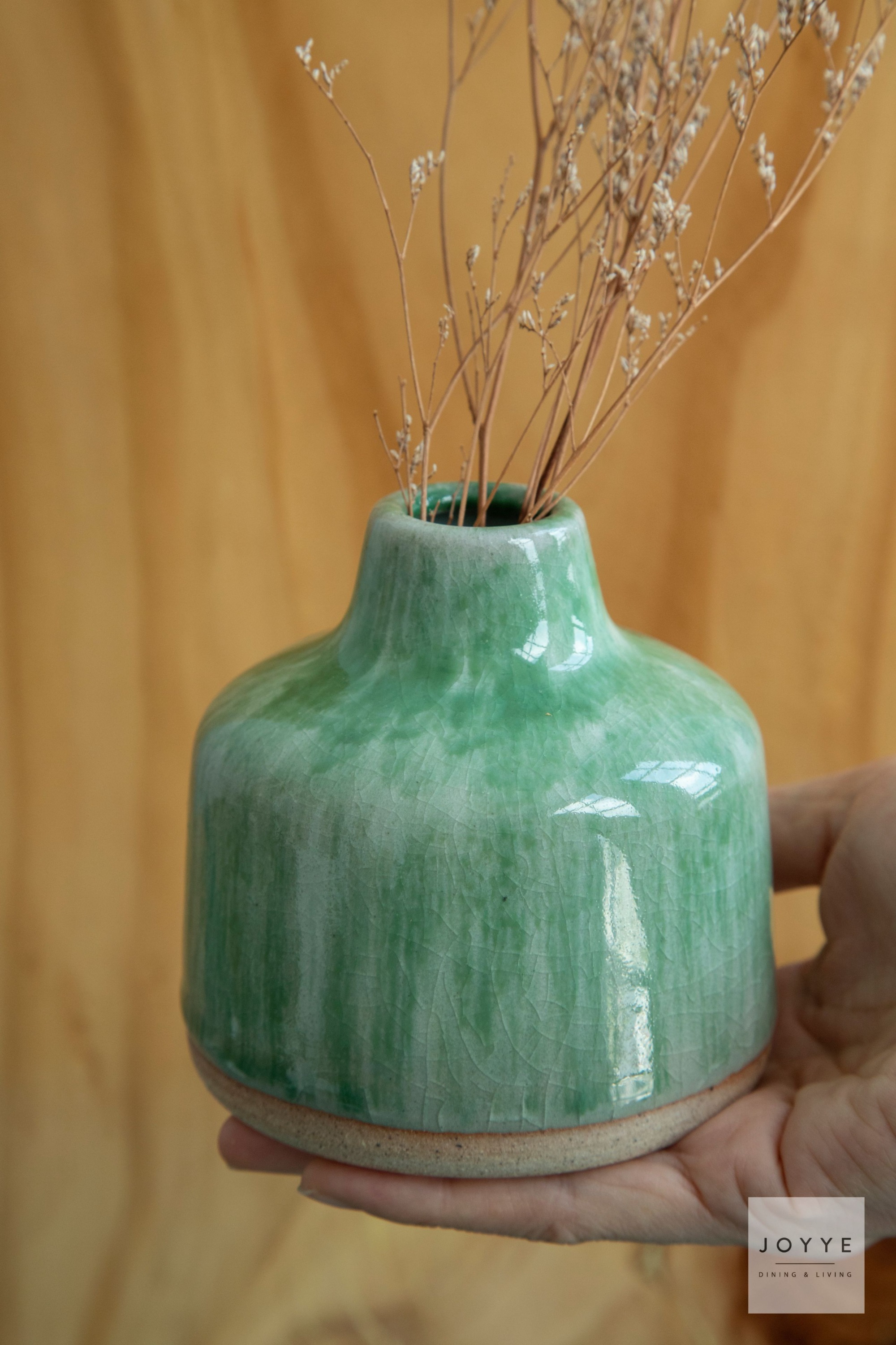 Feel the style of green! Explore a new vase collection with 4 kinds of various green styles.No matter the hand-painted feeling or an organic reactive glaze look, or elegant crackled glaze vibe, or a fresh matte speckle style. It is flexible to group them again or set them apart alone for chic home decor.