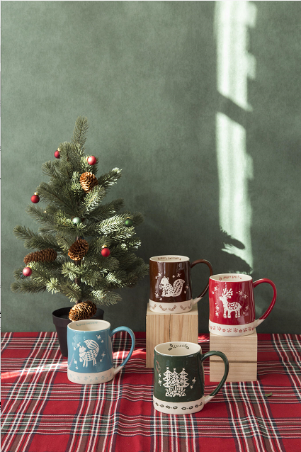 The traditional Christmas color combination is no doubt that belongs to Red and Green. With Xmas animal patterns in glaze-proof in various colors, all of them are creating a joyful Xmas look. Made of stable stoneware in a popular mug vessel, the Happy Christmas Mug Collection is suitable for helping set the scene. Various colors and shapes are available.