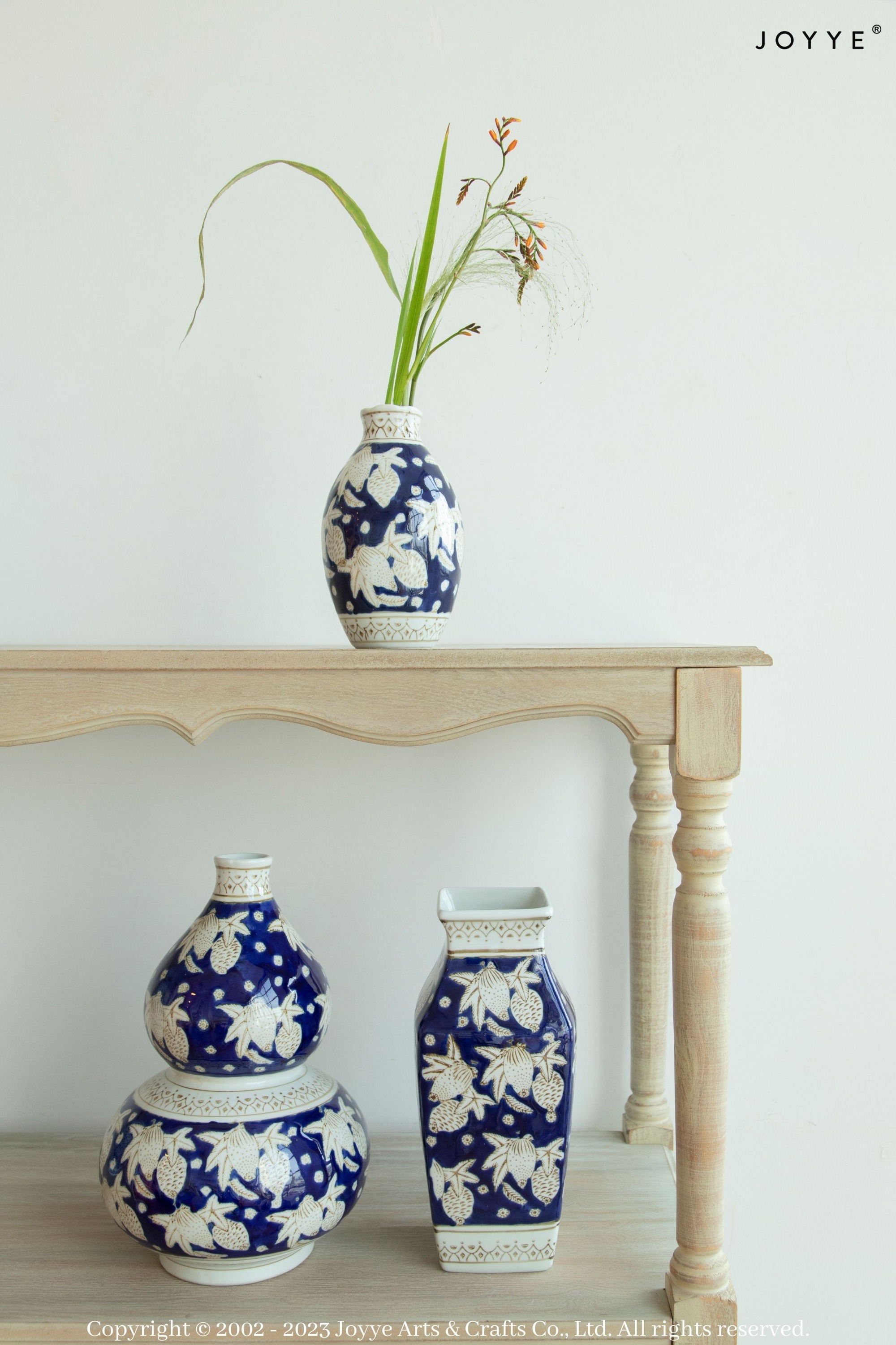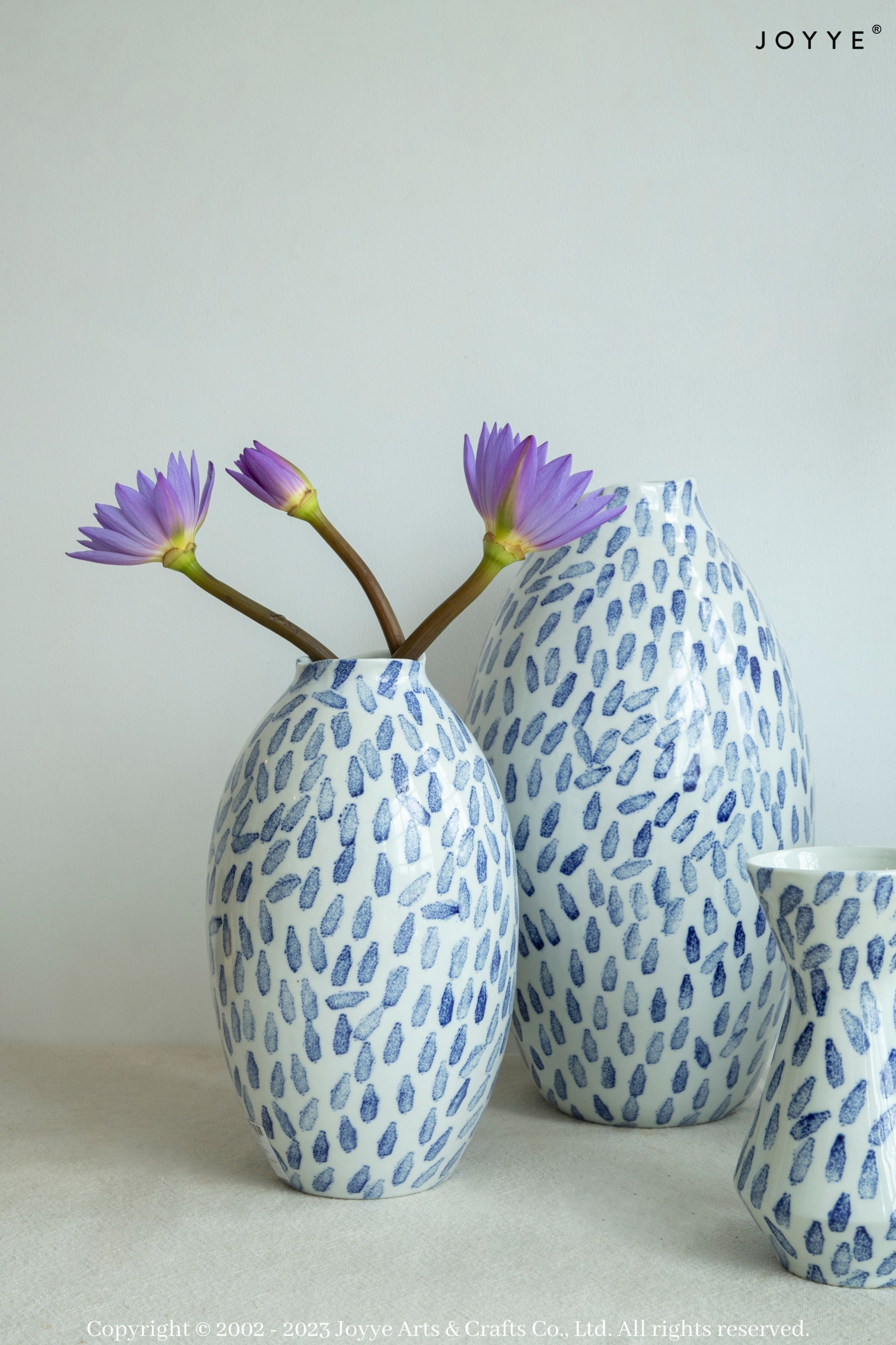 Their remarkable versatility in home decor makes blue and white ceramics timeless. From ornate vases that command attention in the living room to delicate plates that add a touch of refinement to your dining space, these ceramics effortlessly blend with various design styles. Explore our collection of Flower-Stamped designs to find the perfect piece for your home. Experimenting with eclectic combinations, such as pairing Flower-Stamped ceramic with sleek modern furniture, allows you to create a unique and personalized aesthetic.