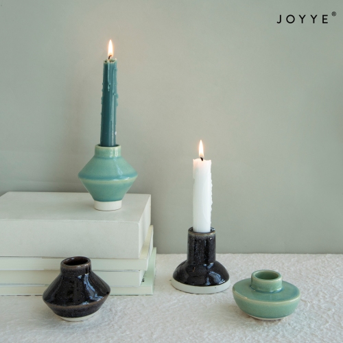 This collection introduces a fusion of geometric shapes, adding an element of contemporary grace to the timeless craft. The reactive glaze interacts uniquely with the ceramic surfaces, creating a stunning visual texture that makes each candle holder a centerpiece in its own right.