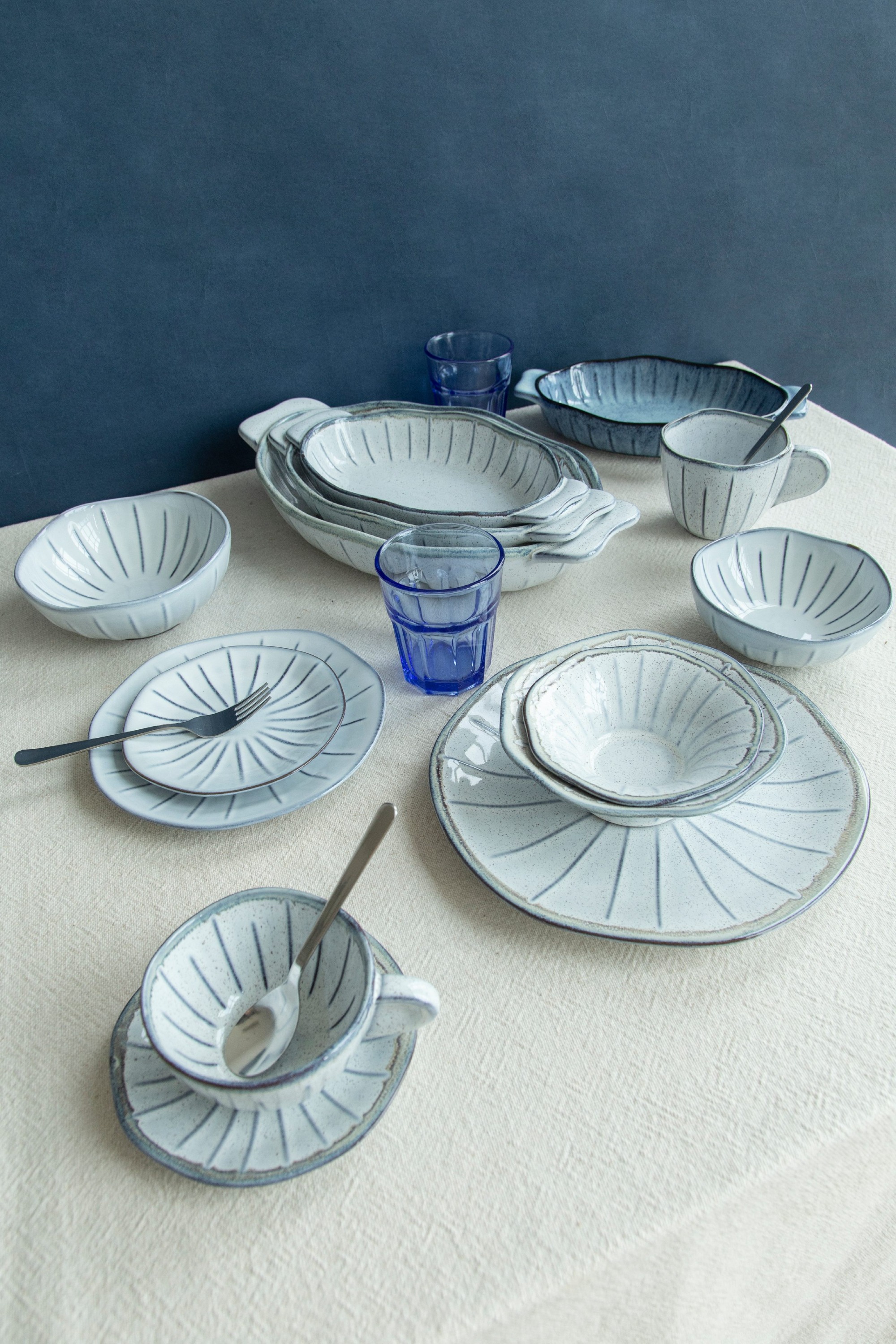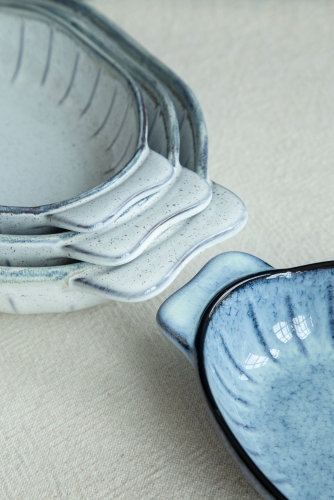 Refinding the magic of the sea, the Blue Coastal Cookware Series is made of light blue glazed stoneware with tiny black speckles and a beautiful surface. The different shape makes the items have a stunning feel.