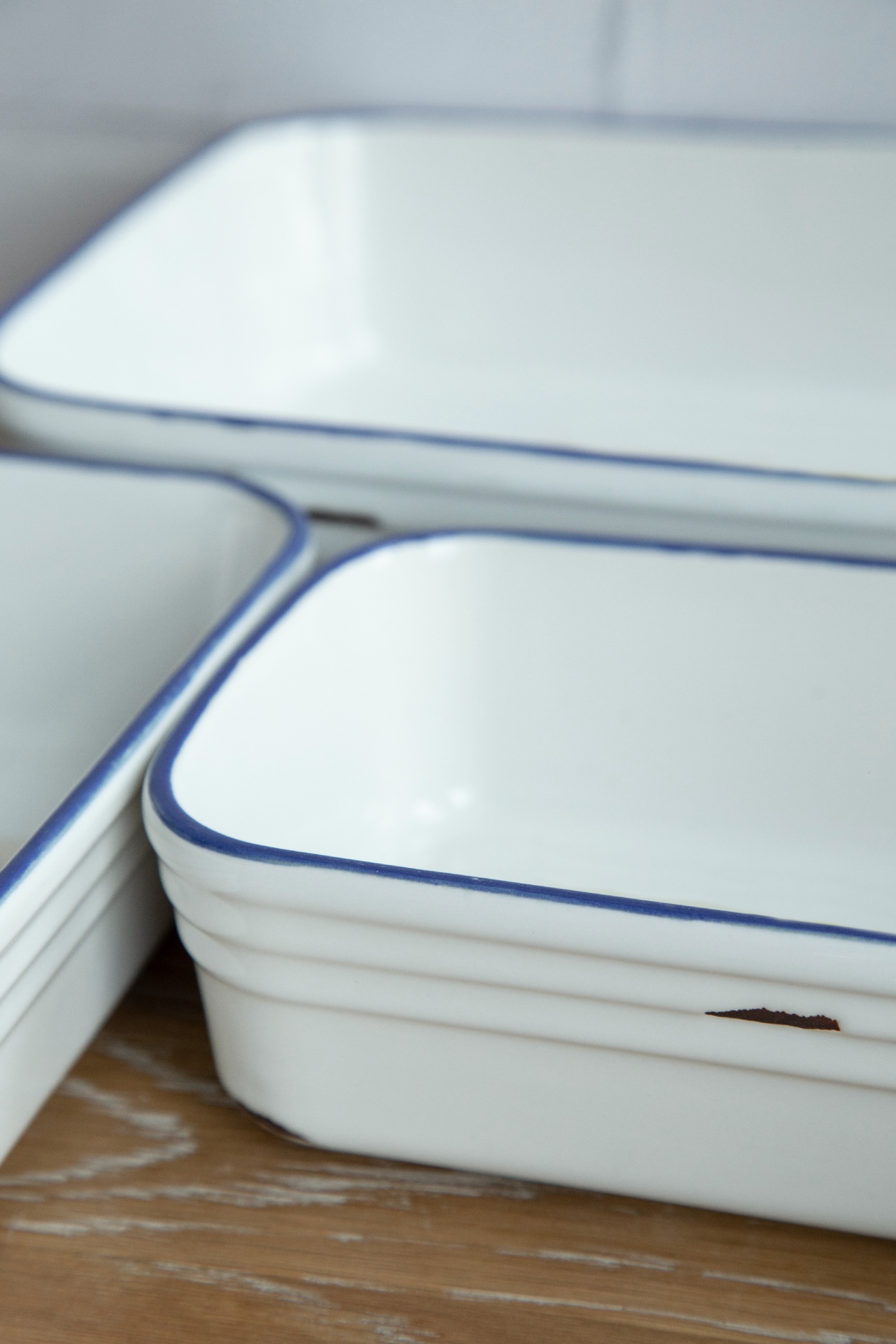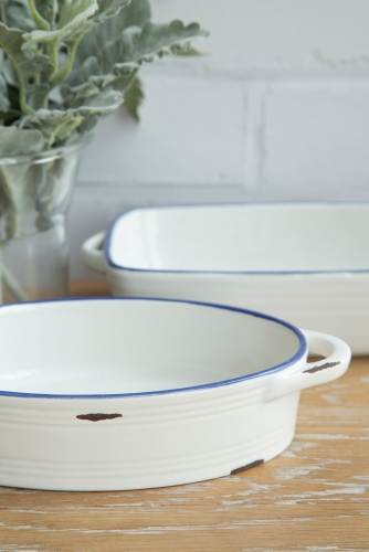 The enamel design recalls the past happy times. Inspired by old-time, the Bonne Temps Bakeware Collection is perfect for the summertime. Glazed in white but with blue rims, it looks delightful and definitely lights up your kitchen table.