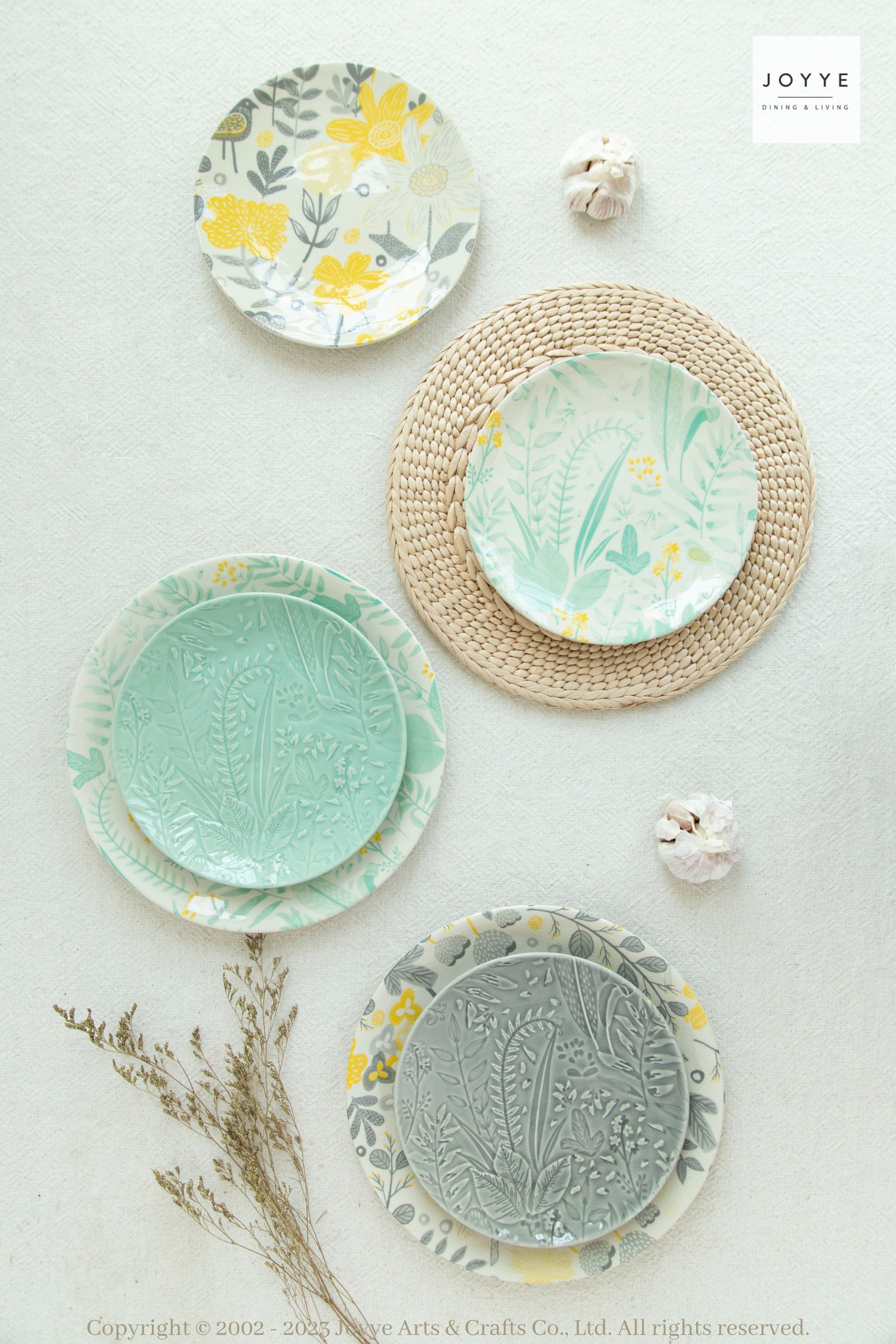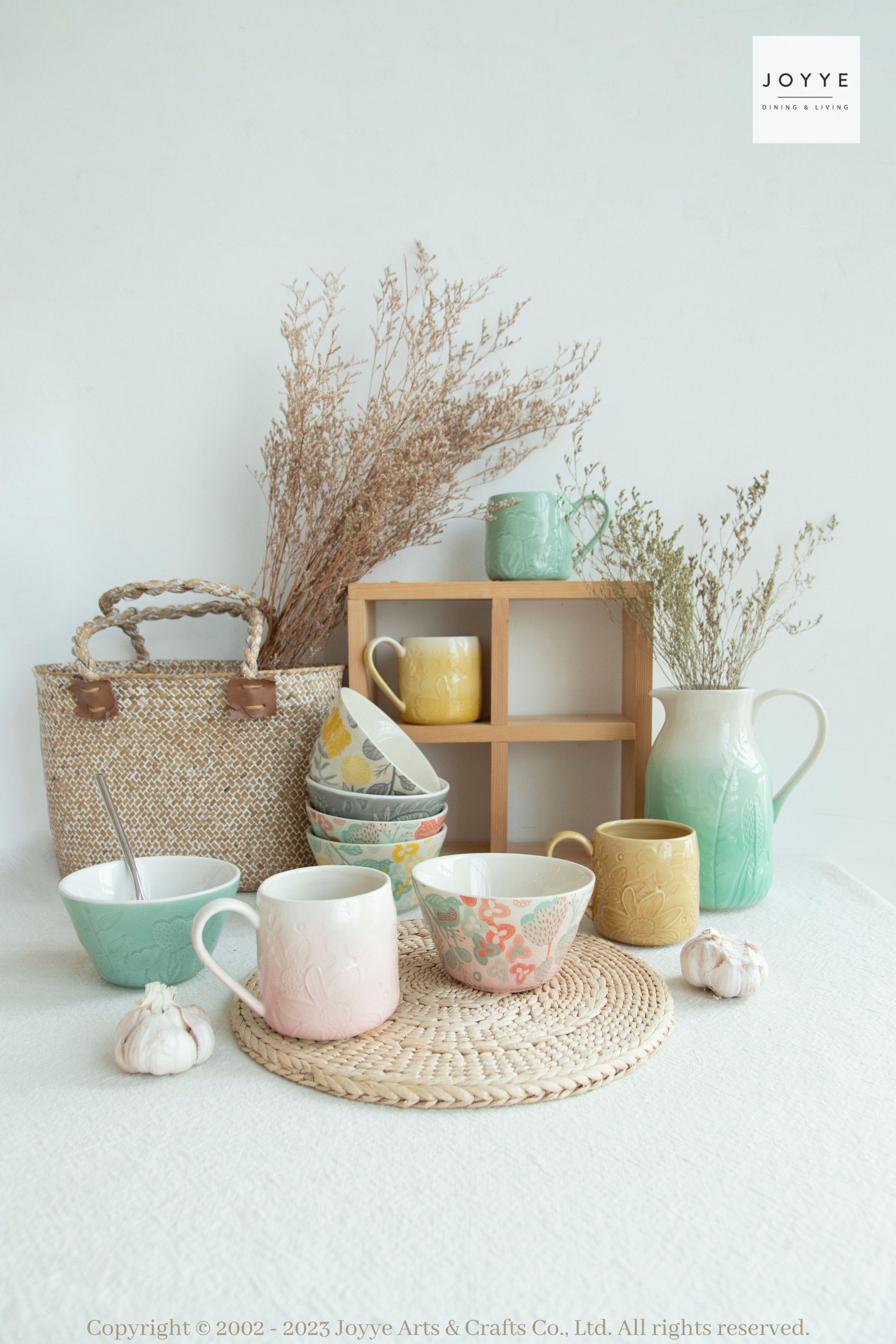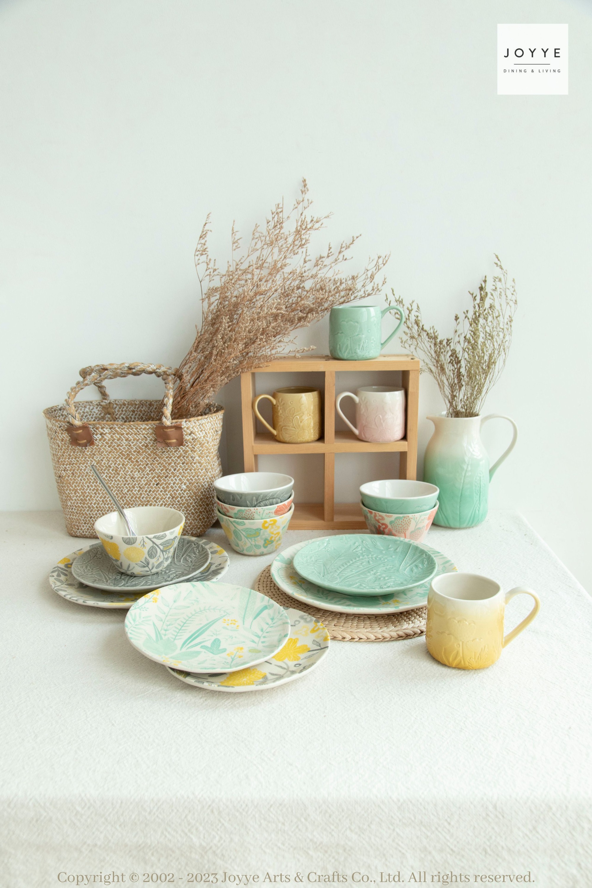 Combined with debossed and embossed flowers, featuring crackle glaze in kinds of soft tones, this tableware collection gives us a piece of quiet vibe for meal time.