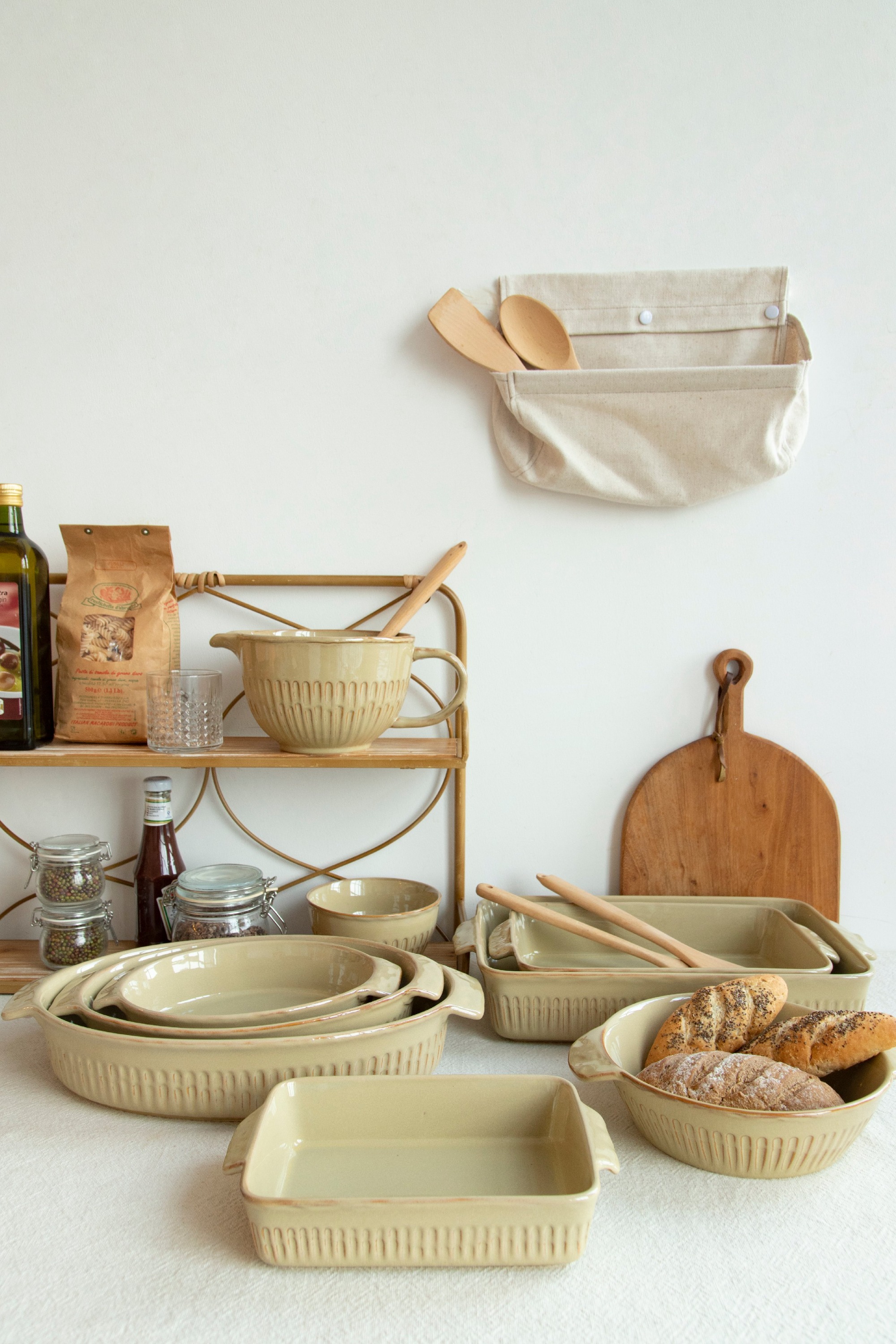 With debossed textures and earthy tones, this cookware collection is translated into a handmade visual feeling to create an organic look for the kitchen. Different sizes and shapes must fulfill your kitchen set demands.