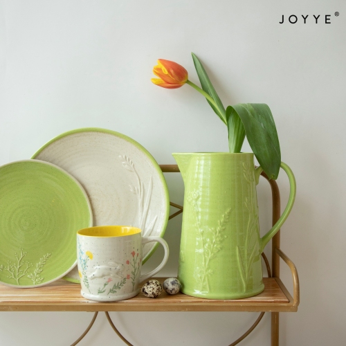 Embossed with cute bunnies and with plenty of flowers and plant patterns in glaze-proof, this set of tableware contains kinds of dishes and vessels, it will be a must-have for your daily table decor and is perfect for Easter.