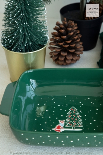 Made of stoneware with a handmade touch, our organic rectangular bakeware features red or green glazed rims and two handles, while stamping patterns against the white glazed backdrop make it eye-catching.
