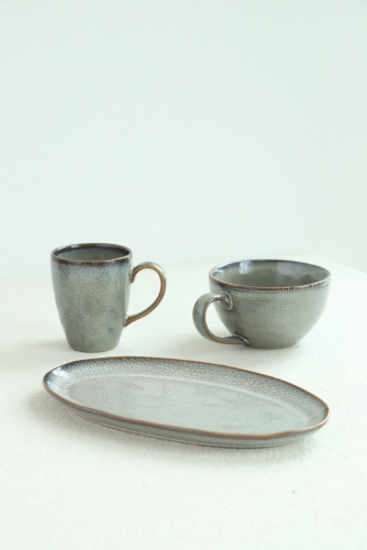 When grey is the main color, the collection made of reactive glaze is added vision textures, delivering a perfect minimal look. Shaped in an organic body and featuring a unique edge on the top, this tableware collection is a special one.