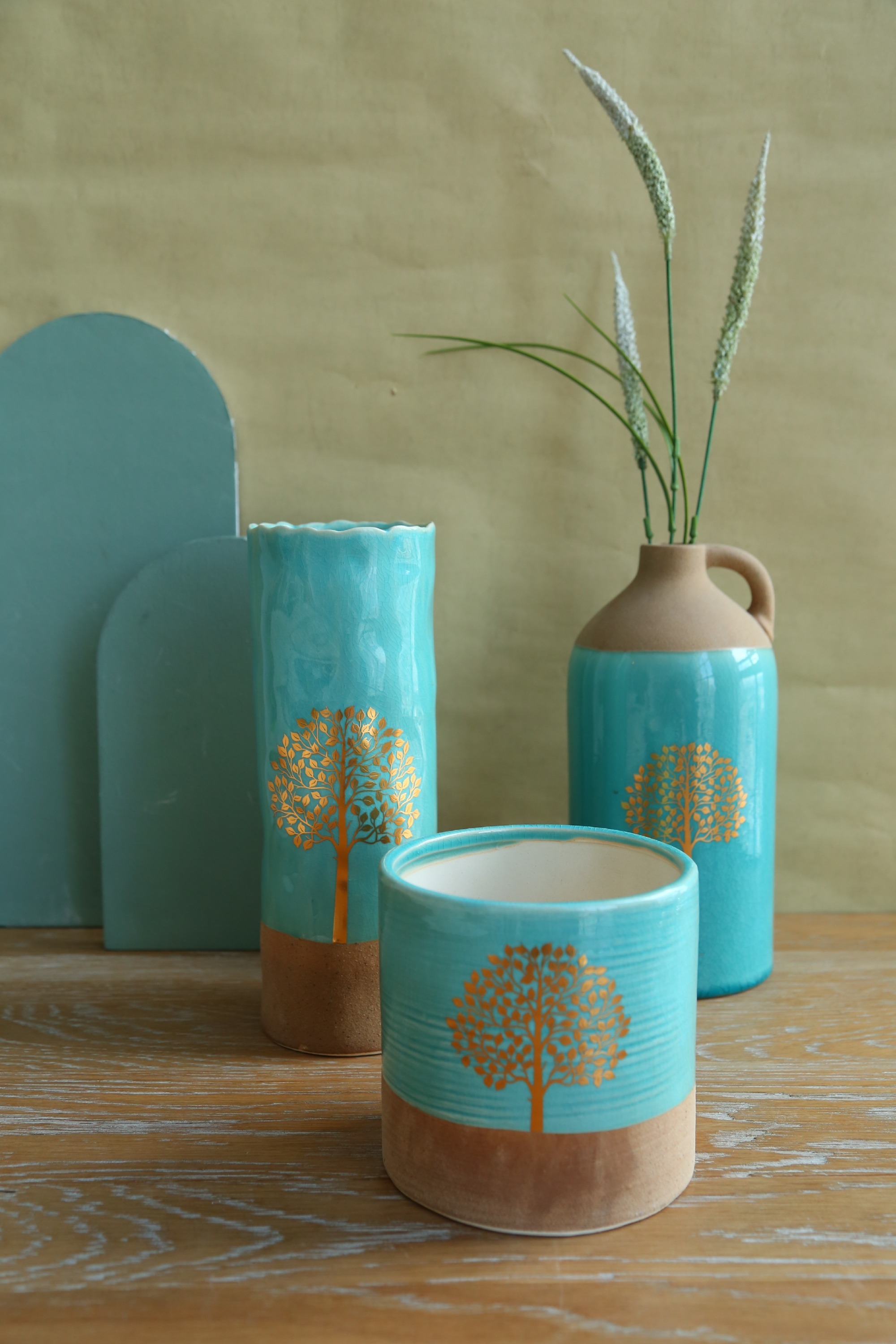 When crackle glaze meets gold plating, it delivers us a delicate sense. The color combination of lake blue and gold creates a classic vibe.