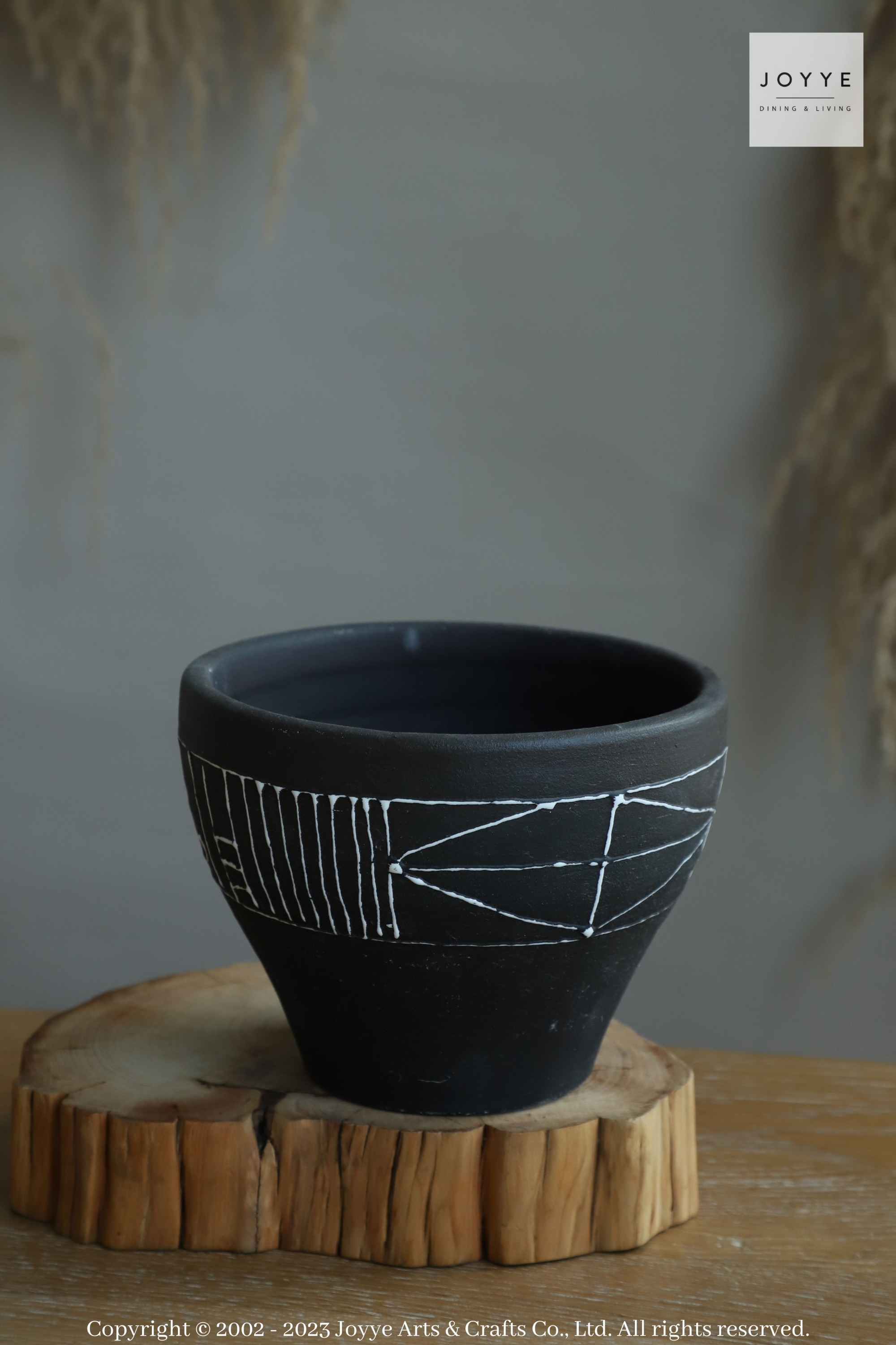 A few simple stripes matched in an interesting way to decorate the surface. While glazed in black, it delivers a more mysterious sense.