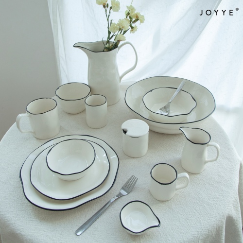 Experience the artistry of contemporary craftsmanship with our ceramic dinnerware collection, inspired by the timeless elegance of black and white. Each piece, thoughtfully shaped with organic curves and finished with a reactive glaze, embodies a modern simplicity that brings effortless style to your table.