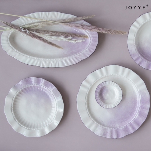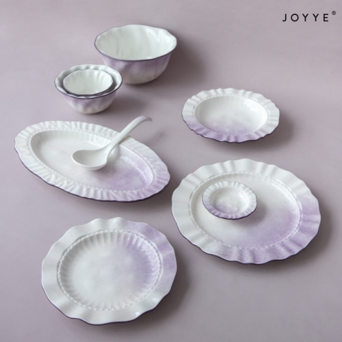 Transport your dining experience to the golden film era with our white and purple reactive glaze tableware. Each piece captures the essence of vintage charm and adds a touch of timeless beauty to your table.