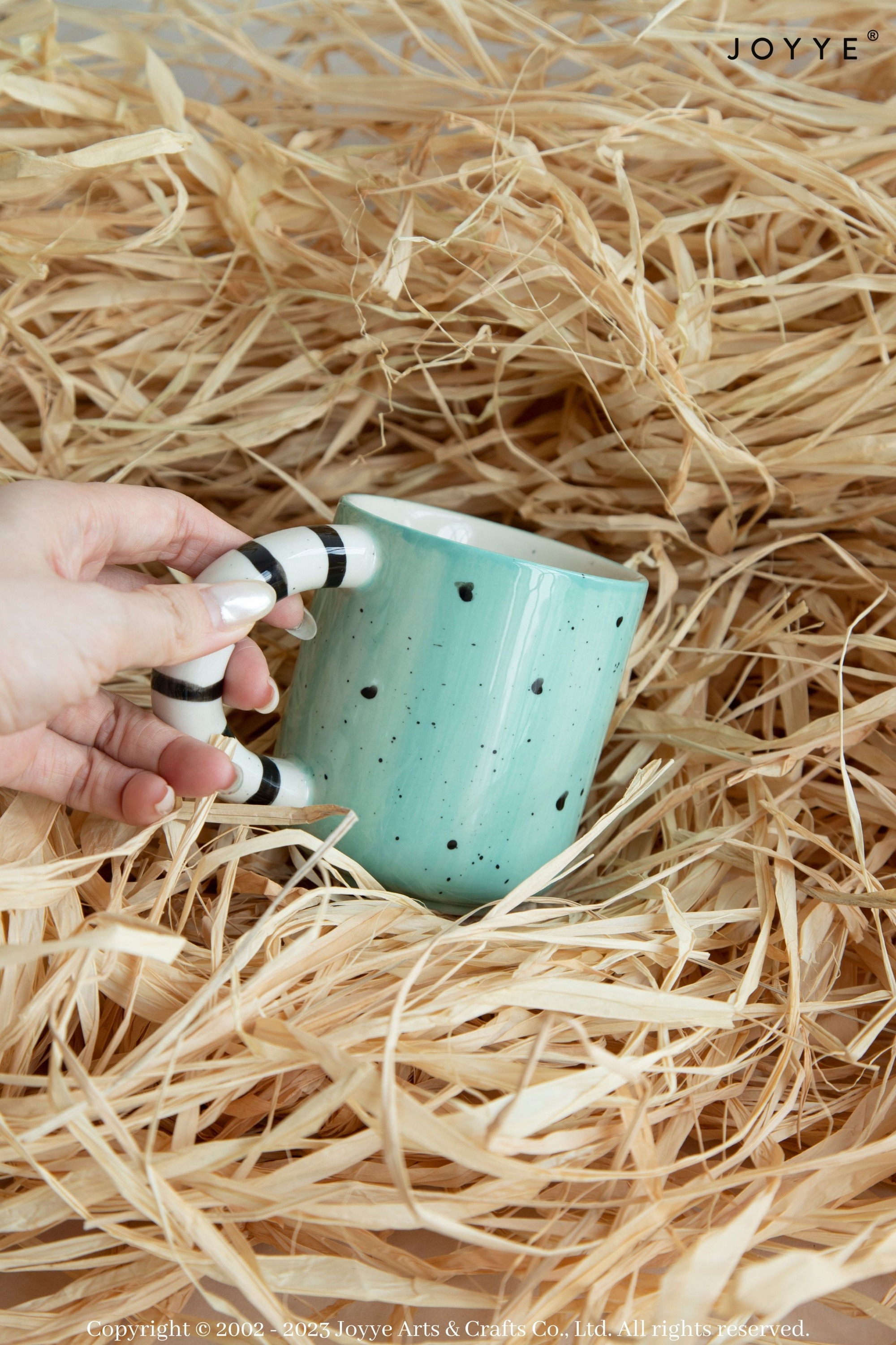Just sip with the colorful mugs in such a vibrant summertime. And the zebra-striped mug handles make it look more lovely.